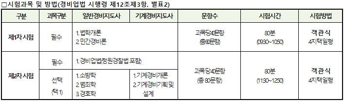 경비지도사 응시자격 및 시험과목