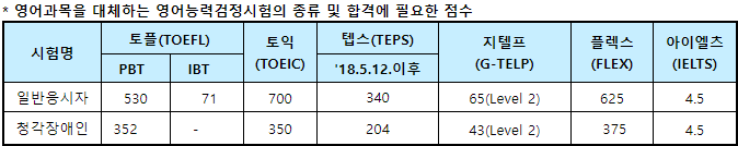 영어 과목은 공인 영어능력시험으로 대체할 수 있습니다.