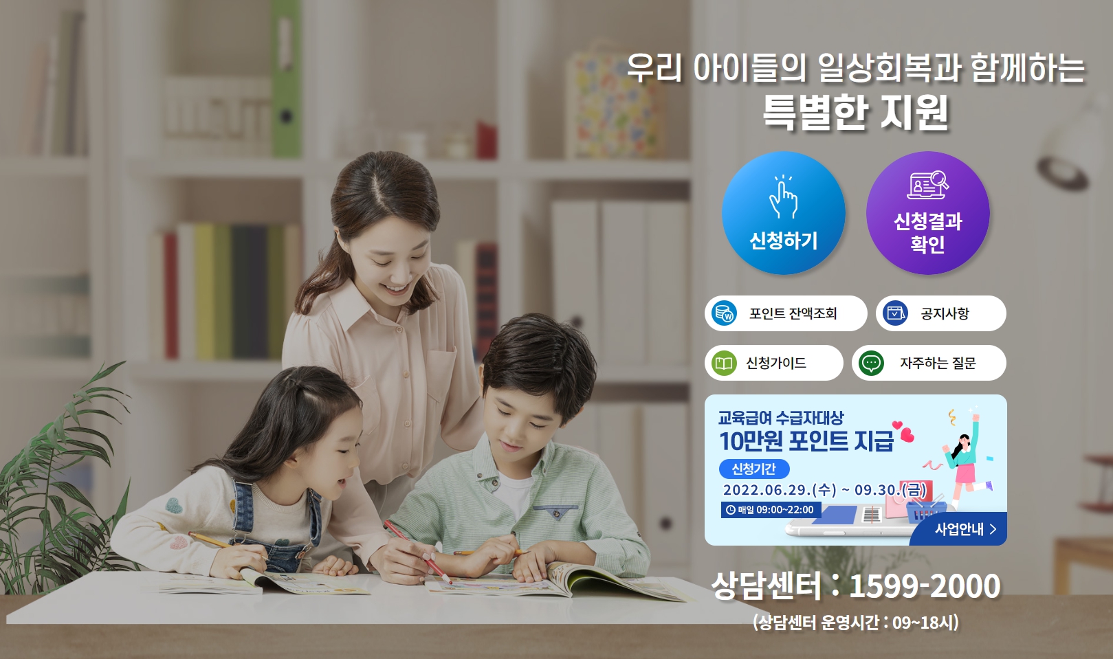 올 초 교육급여을 신청하고 수급하신 분이라면우리 아이들의 일상회복과 함께하는 특별한 지원인 교육급여 학습특별지원금 신청하세요. 신청기간은 22년 6월 29일(수)~9월 30일(금) 까지이며, 기간 안에 매일 09시~22시 입니다.
