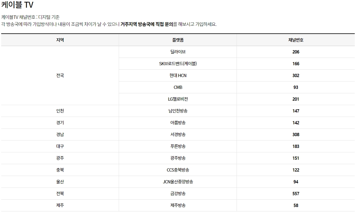 TV 채널을 알려드려야 시청할 수 있겠죠?