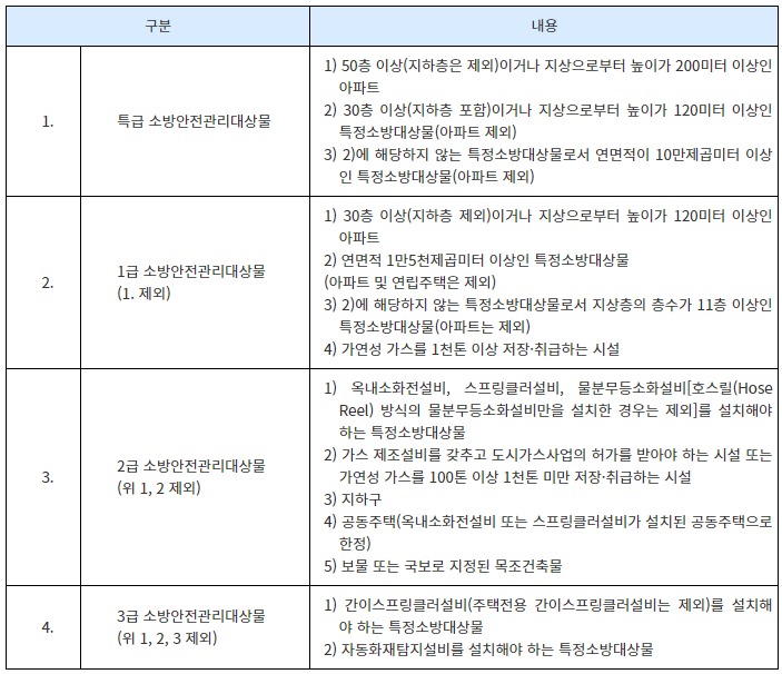 소방안전관리자 등급별 관리내용