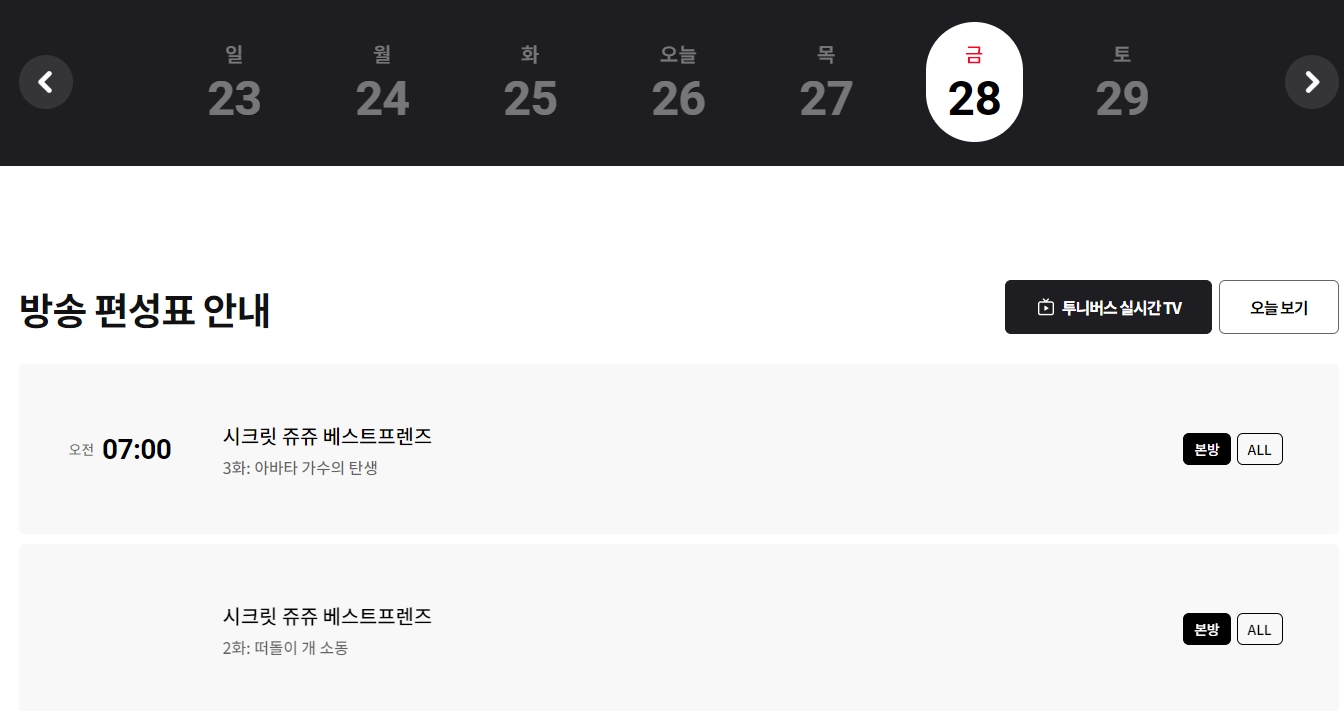 투니버스, 재능TV와 같은 금요일에 방송하네요!