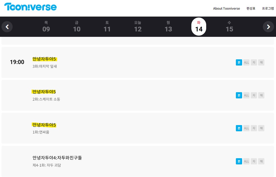 이제 매주 화요일 저녁7시에 투니버스 채널에서 본방 사수해야겠어요!