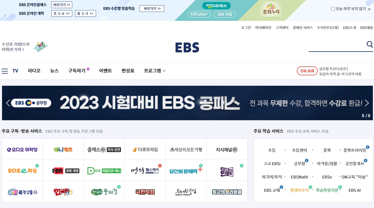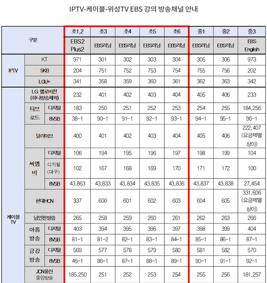 그 외 학년은 EBS러닝 채널에서 방송합니다.