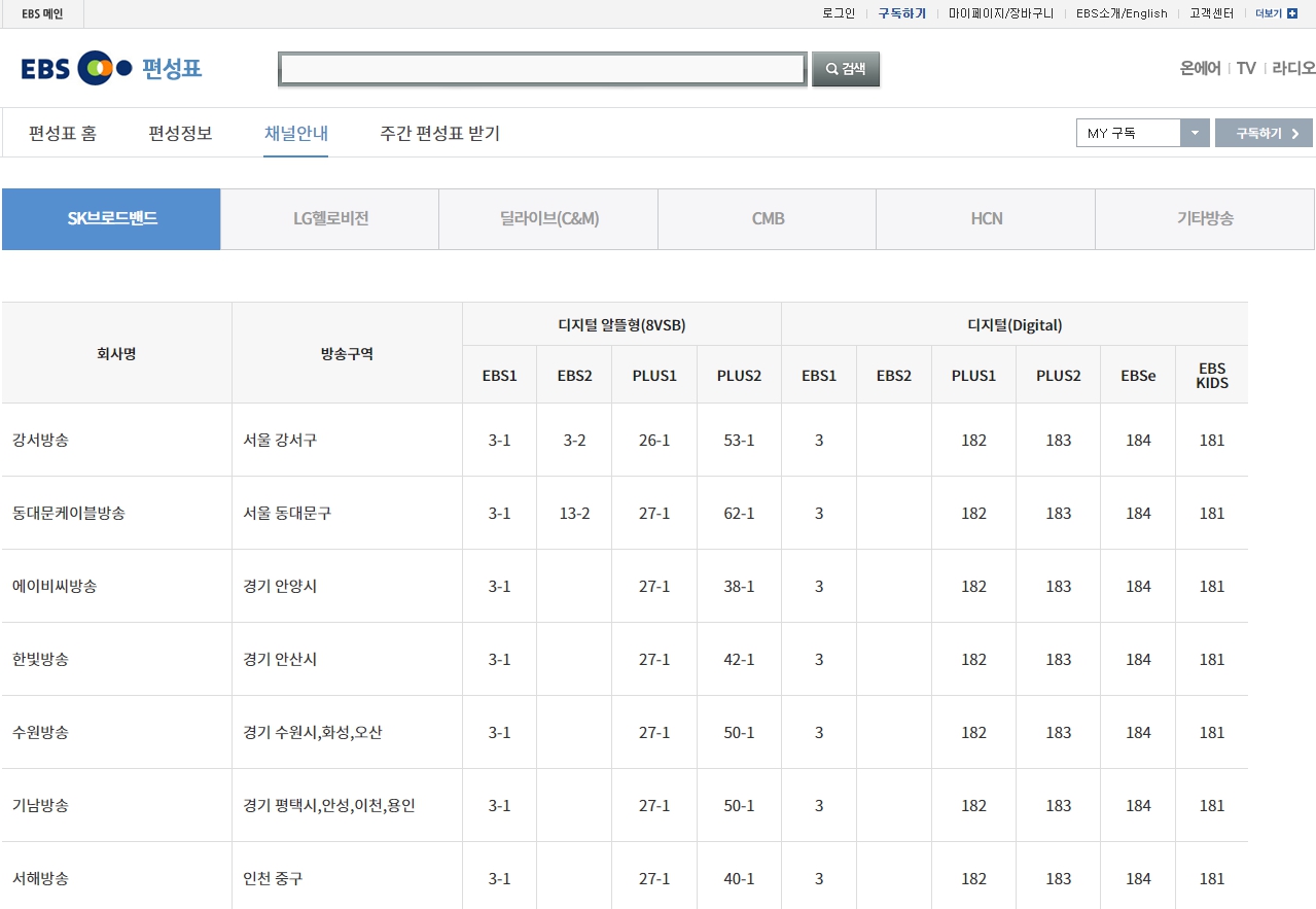 TV로 시청하려면 채널이 뭔지 알아야겠죠??