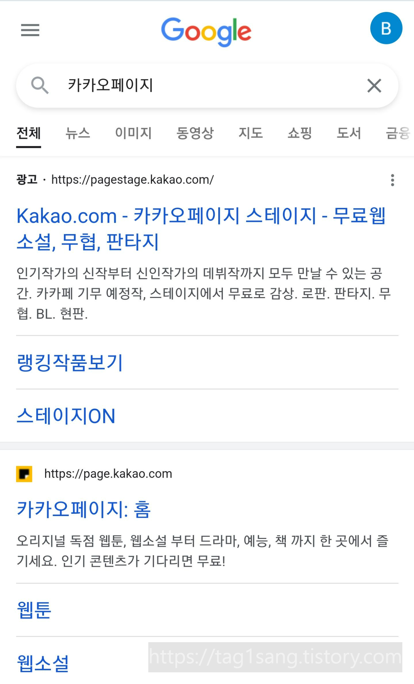 직접 카카오페이지 검색을 하고 '카카오페이지:홈' 을 눌러주세요~