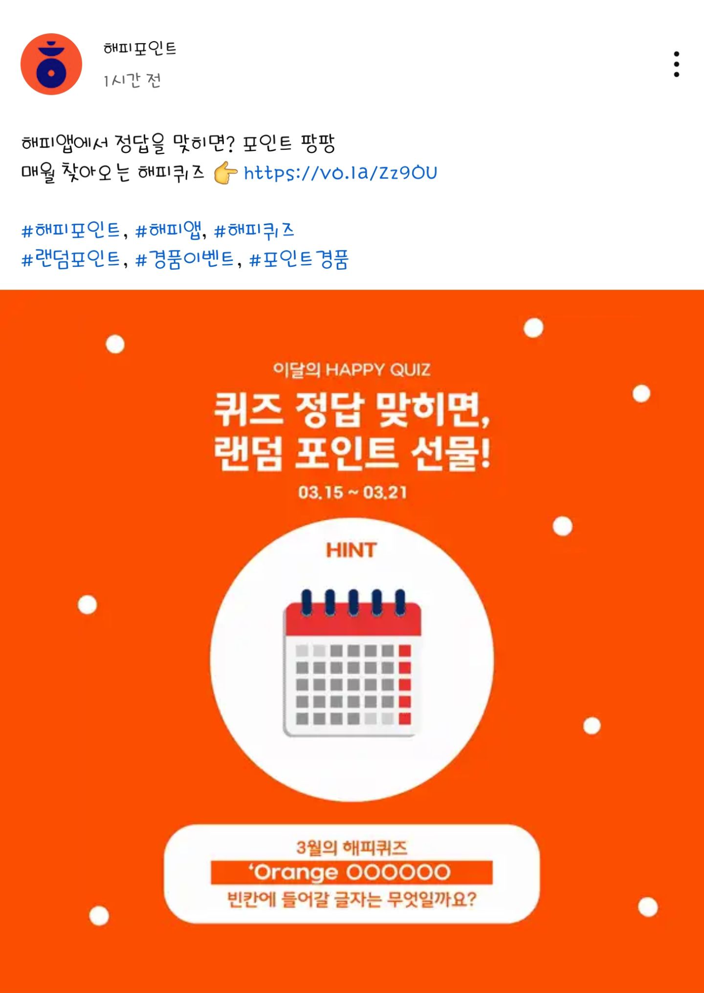 3월의 해피포인트 SNS 첫 퀴즈는