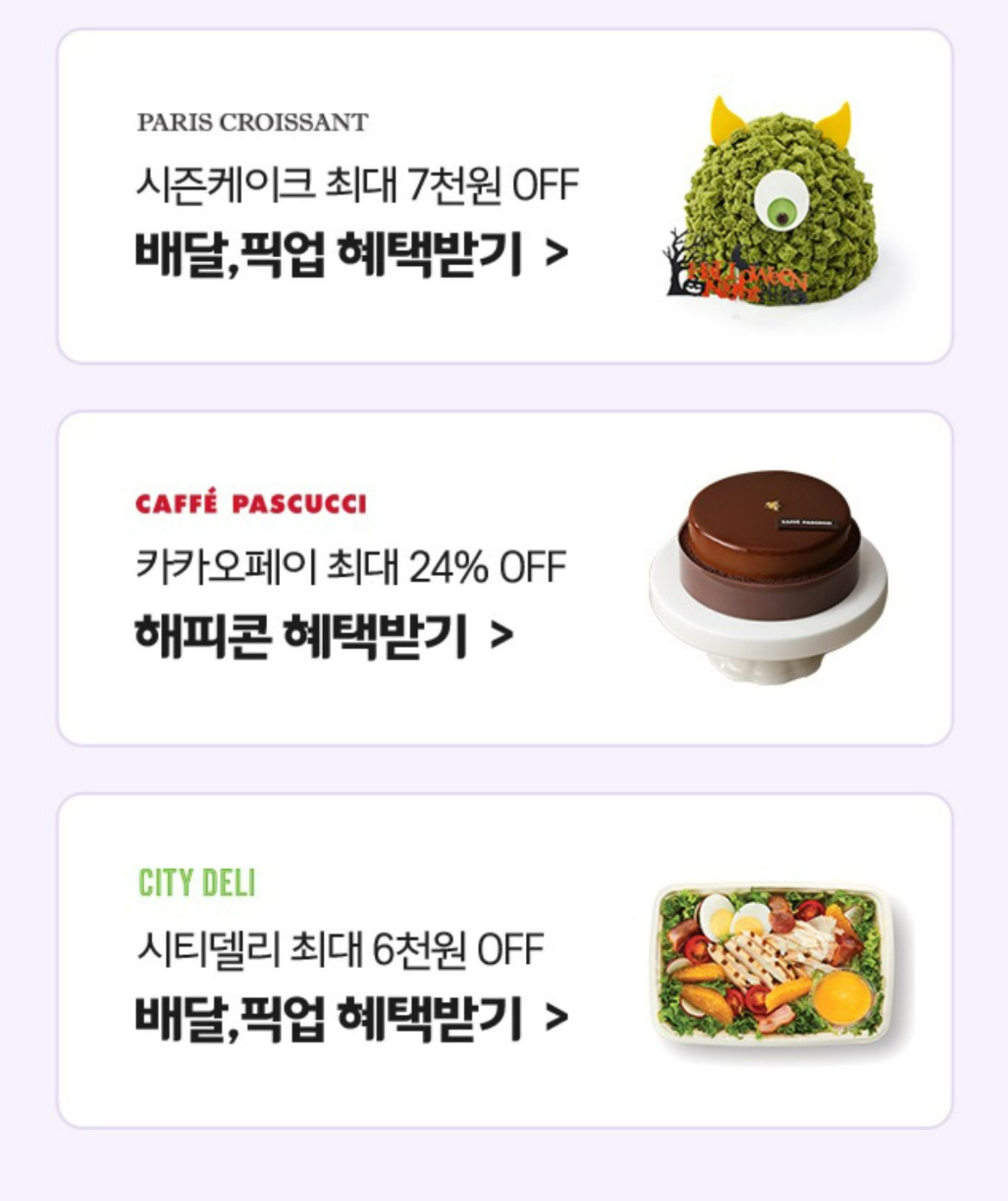 할로윈 시즌 케이크를 픽업하면 최대 7천원 혜택이 있습니다.