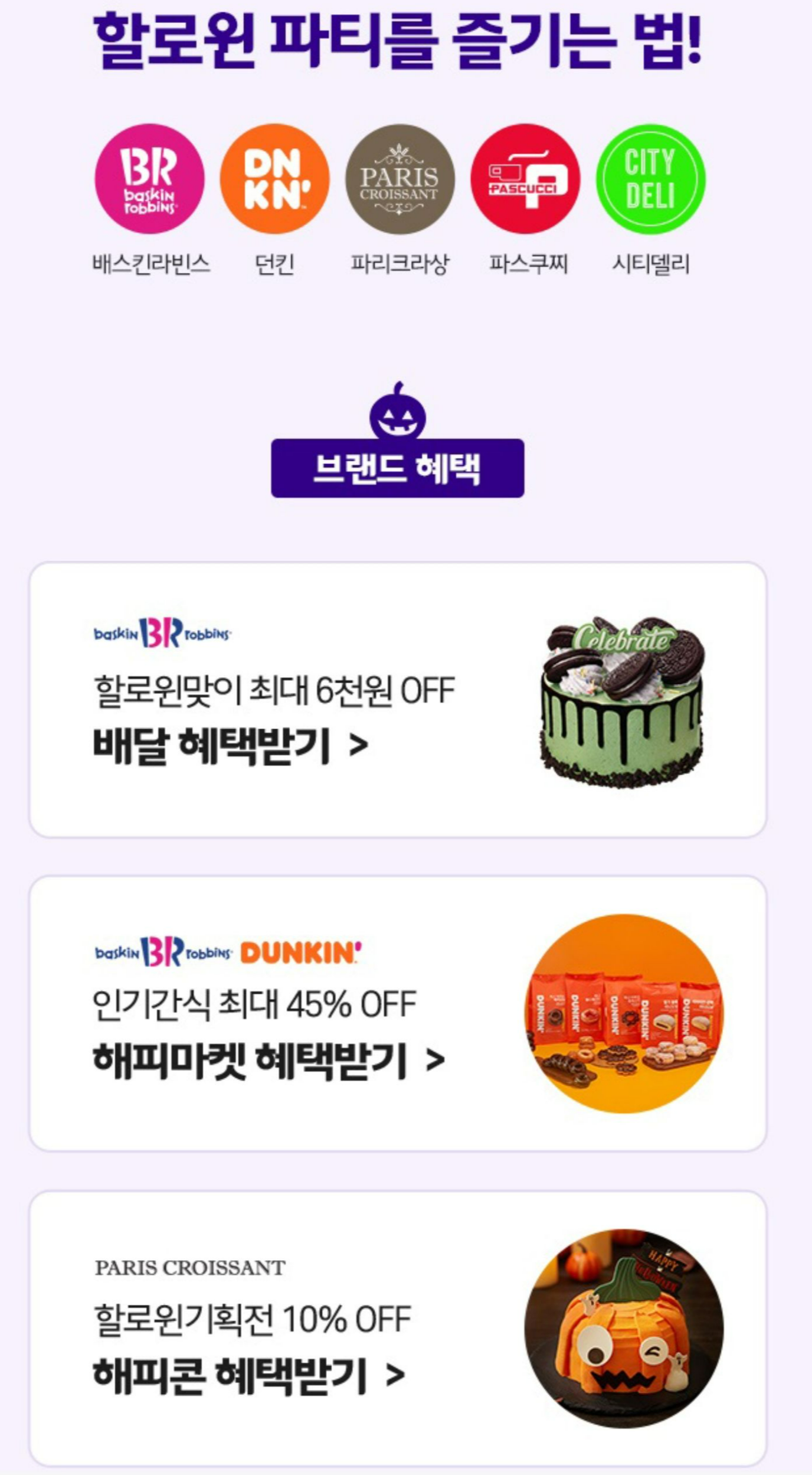 할로윈 시즌 케이크를 10% 혜택 기획전을 하고 있어요.