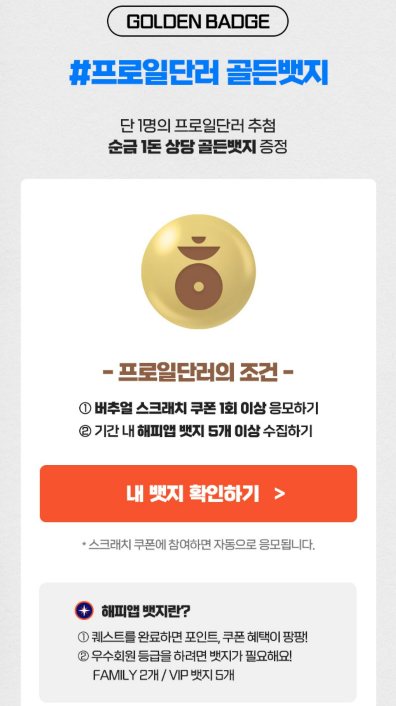 뱃지는 해피앱 내에 있으니 확인하시구요~