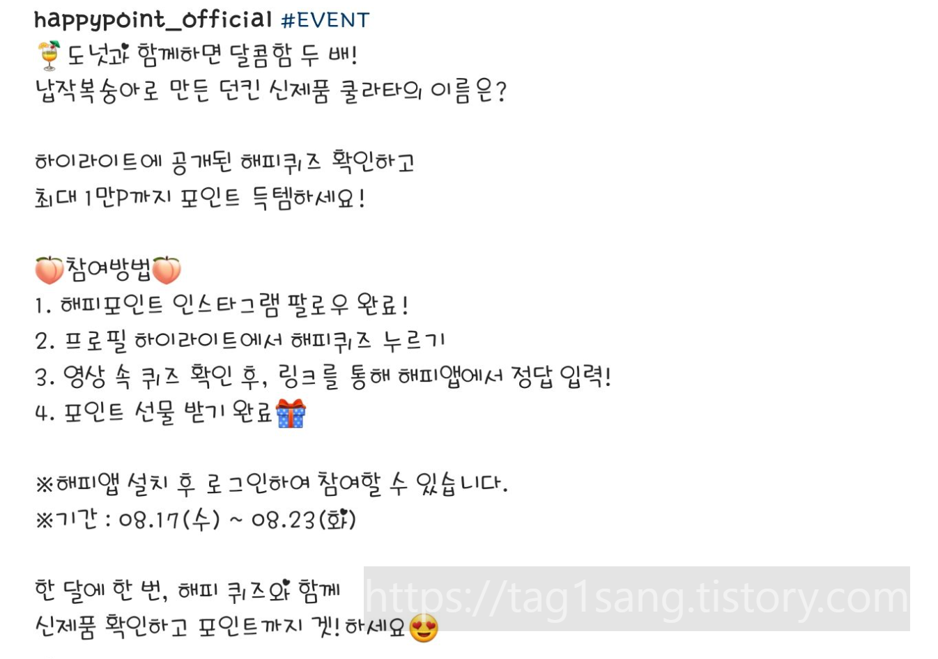 인스타를 통한 퀴즈 참여 기간은