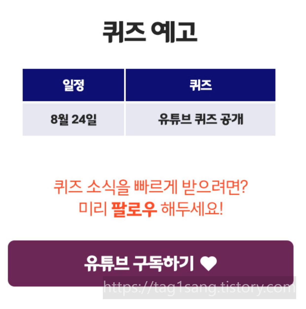 8월 24일 유튜브를 통해서 퀴즈가 공개된대요!