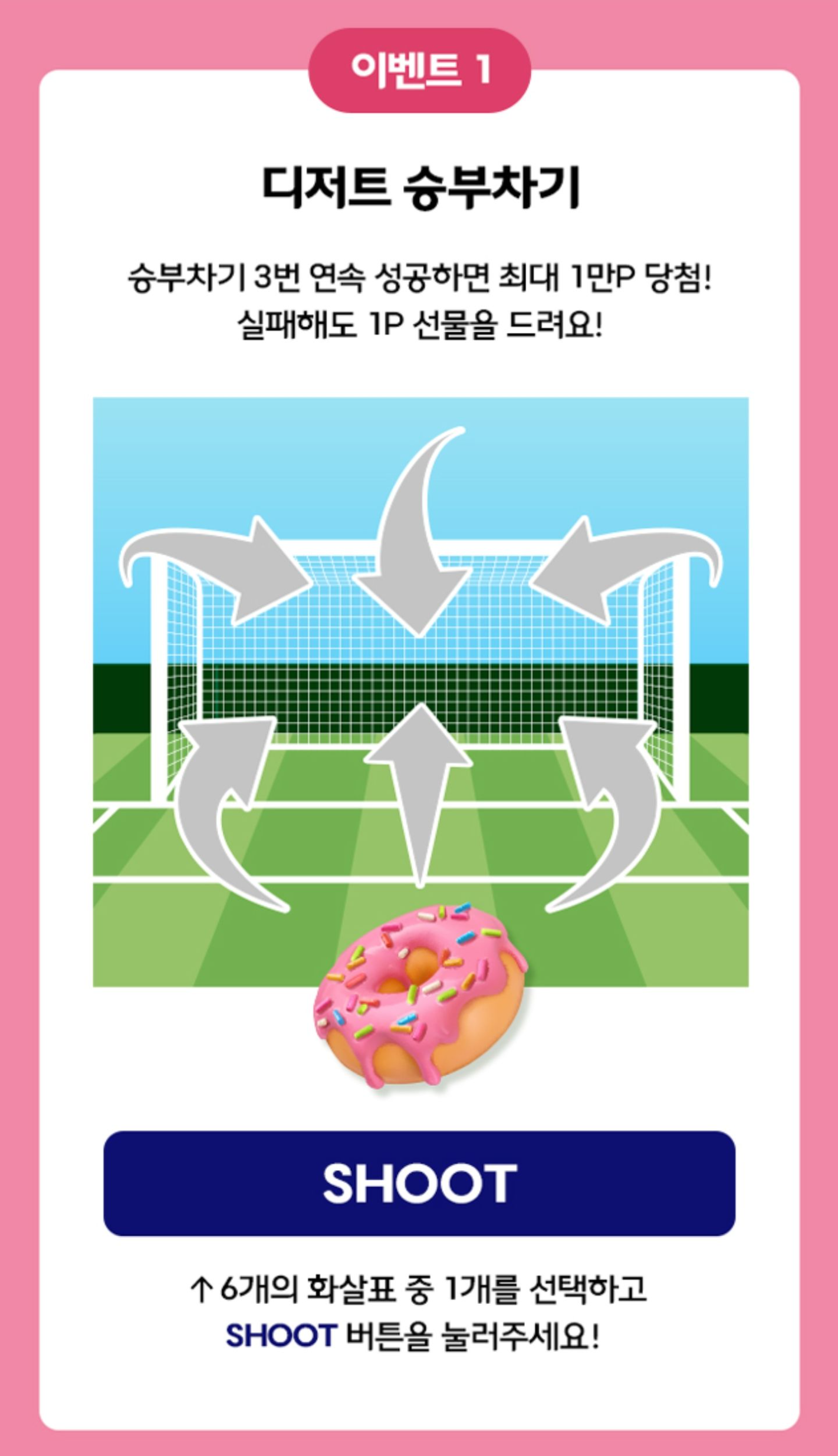 승부차기 3번 연속 성공하면 최대 1만 포인트 당첨돼요!