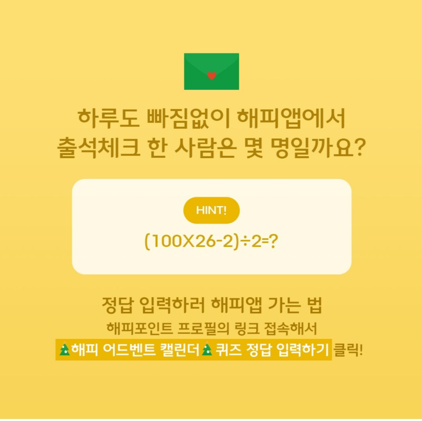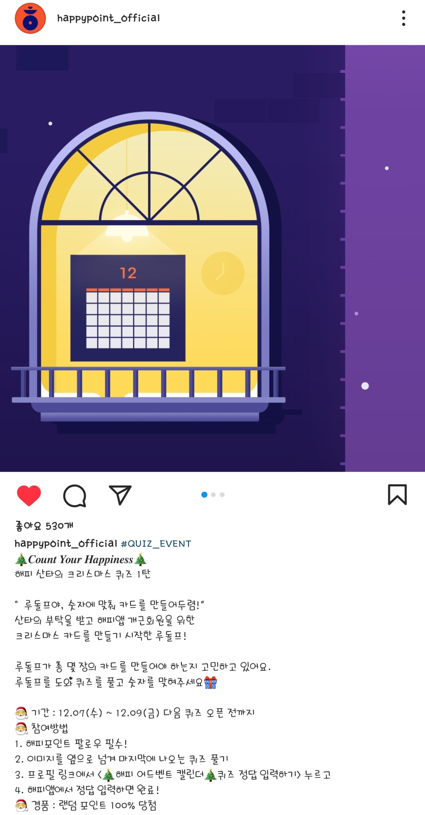해피포인트의 크리스마스 두번째 이벤트 퀴즈가 오픈됐어요!!!!