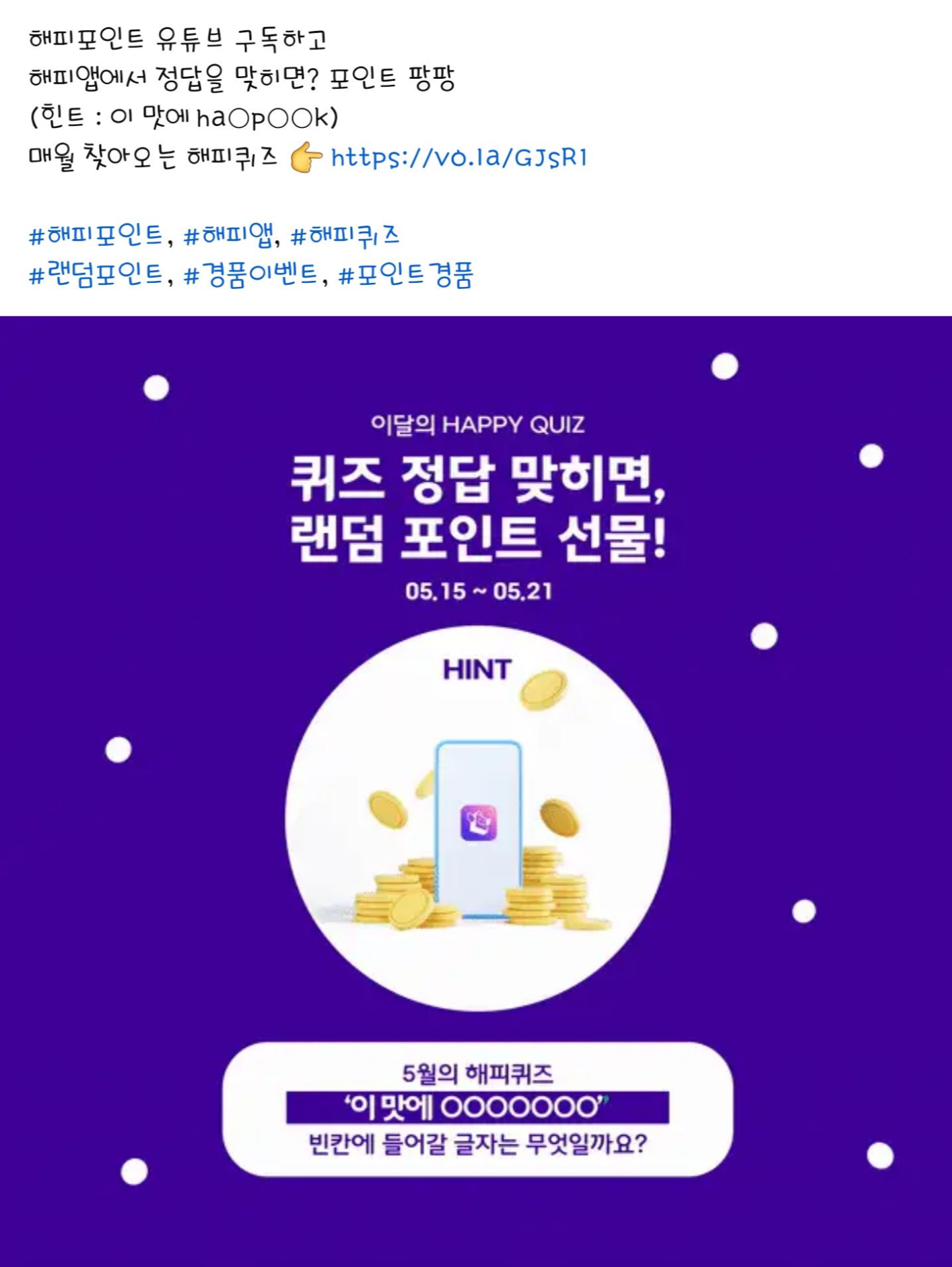 다음 해피퀴즈를 기다리며 기대해봅니다!!