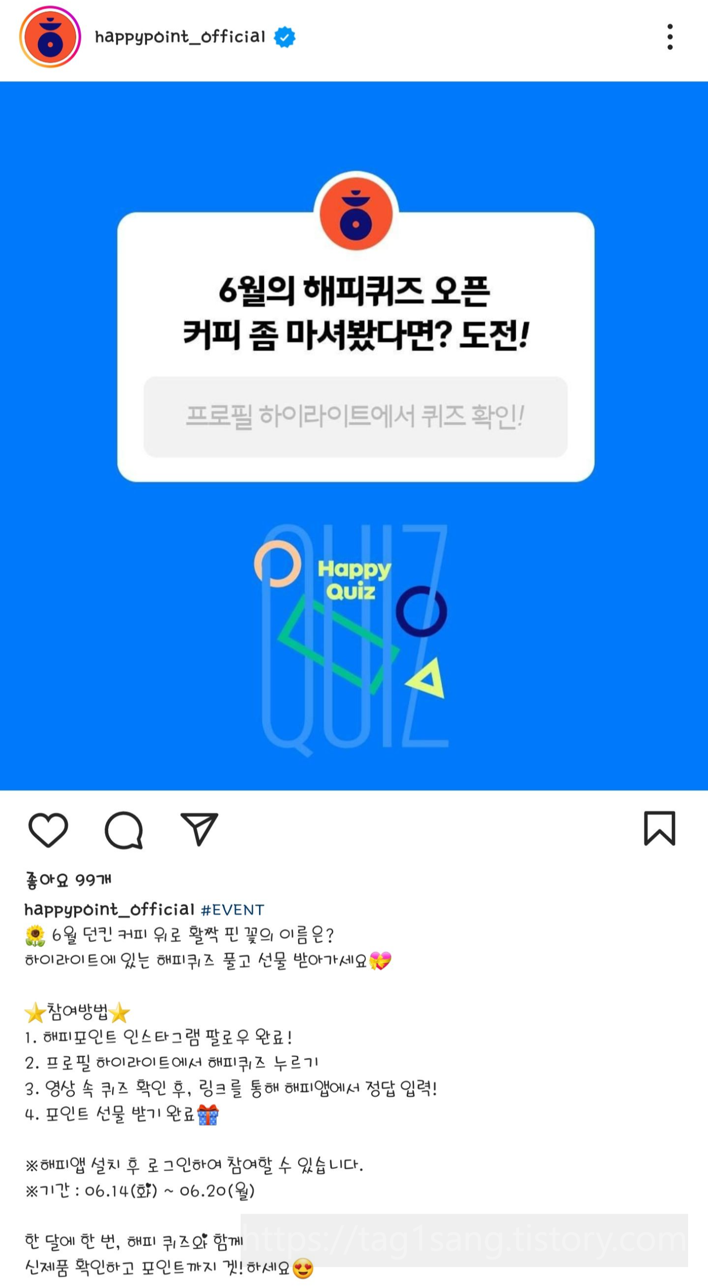 영상 속에 있는 퀴즈를 확인 후에 링크를 통해 해피앱에서 정답을 입력하면 된대요.