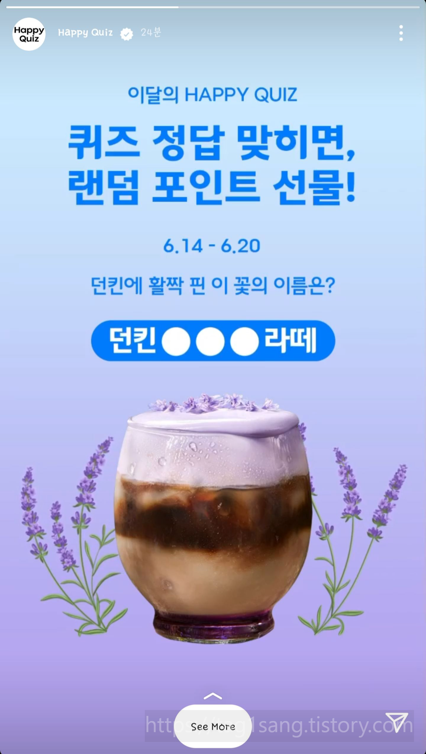 프로필에 있는 하이라이트에서 해피퀴즈를 누르면 돼요.