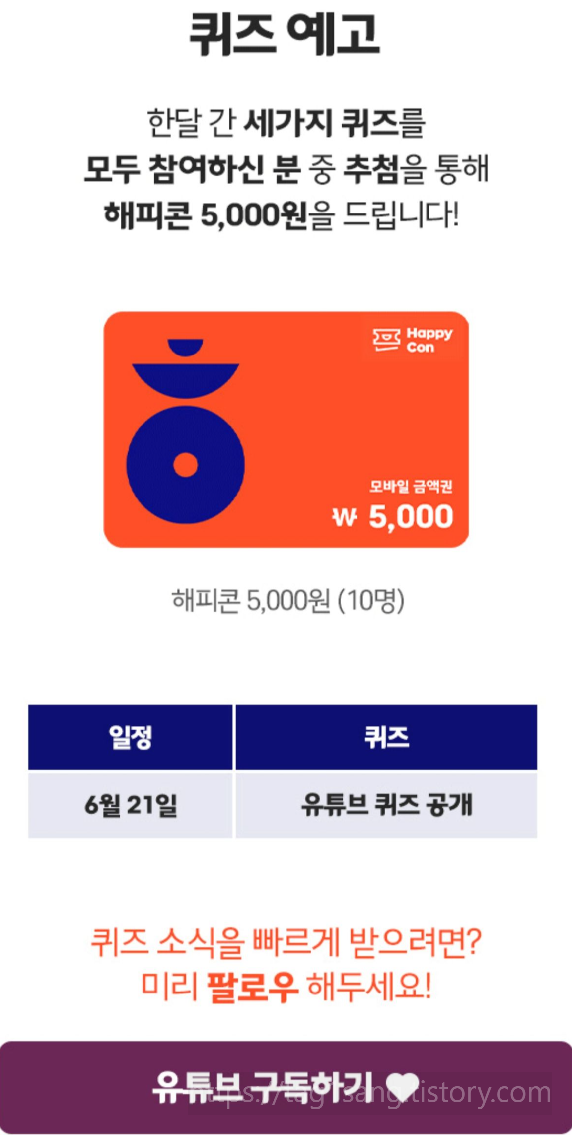 다음 퀴즈는 유튜브에서 공개한다고 하니 오픈하기 전에