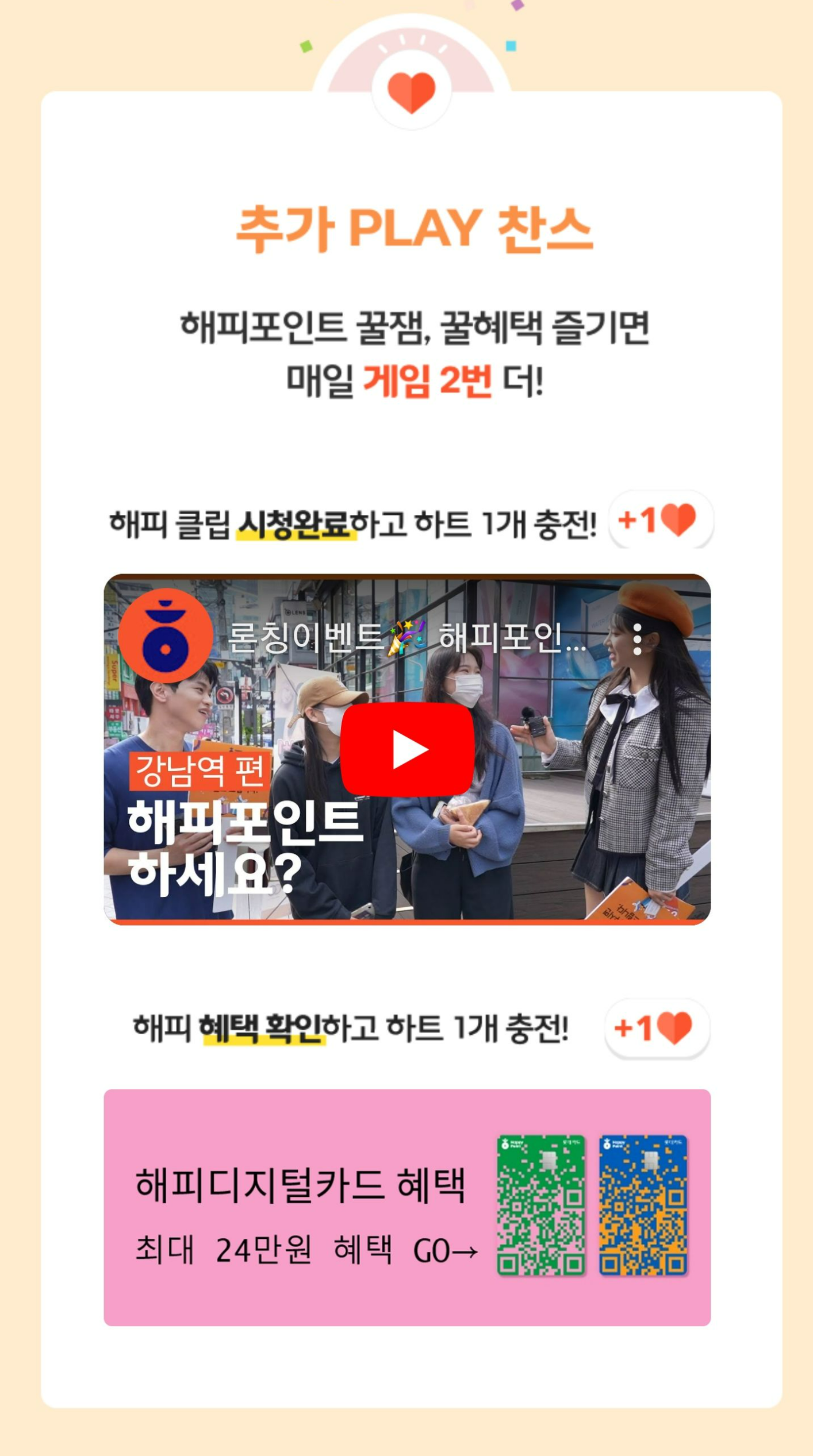 오늘 4일 해피포인트의 게임이 오픈했어요!!