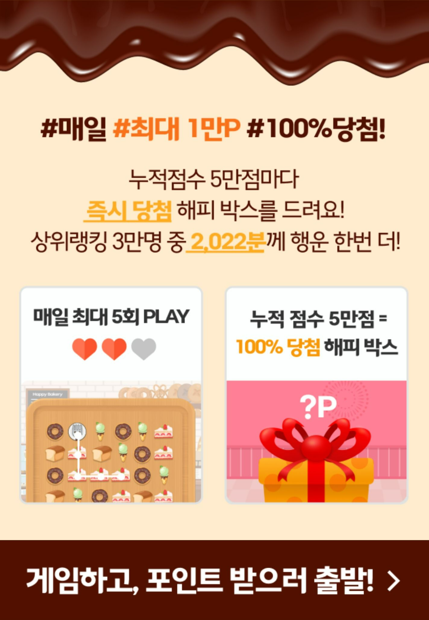 매일 해피박스를 받으려면 1게임당 1만점을 넘겨야 하니