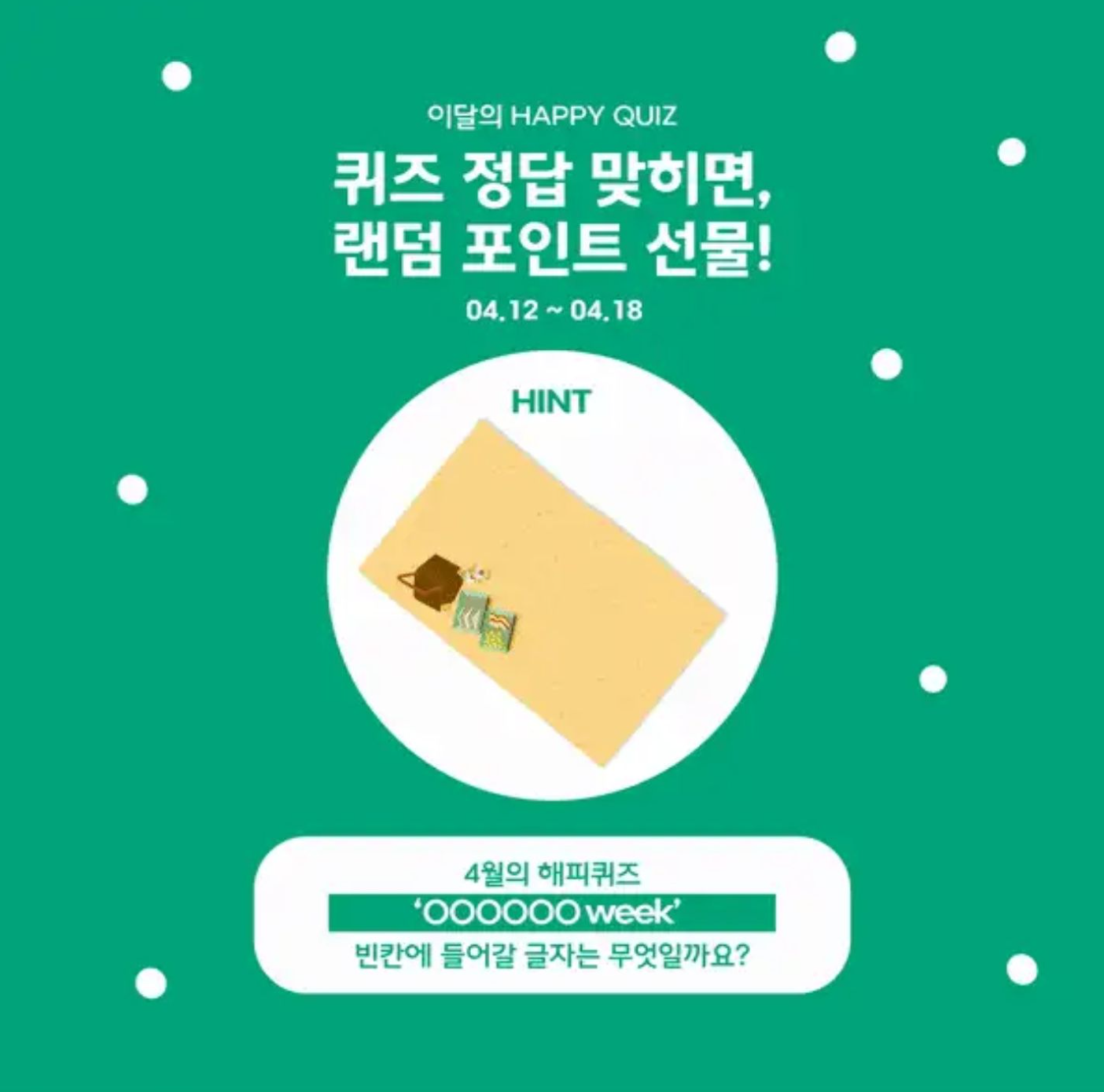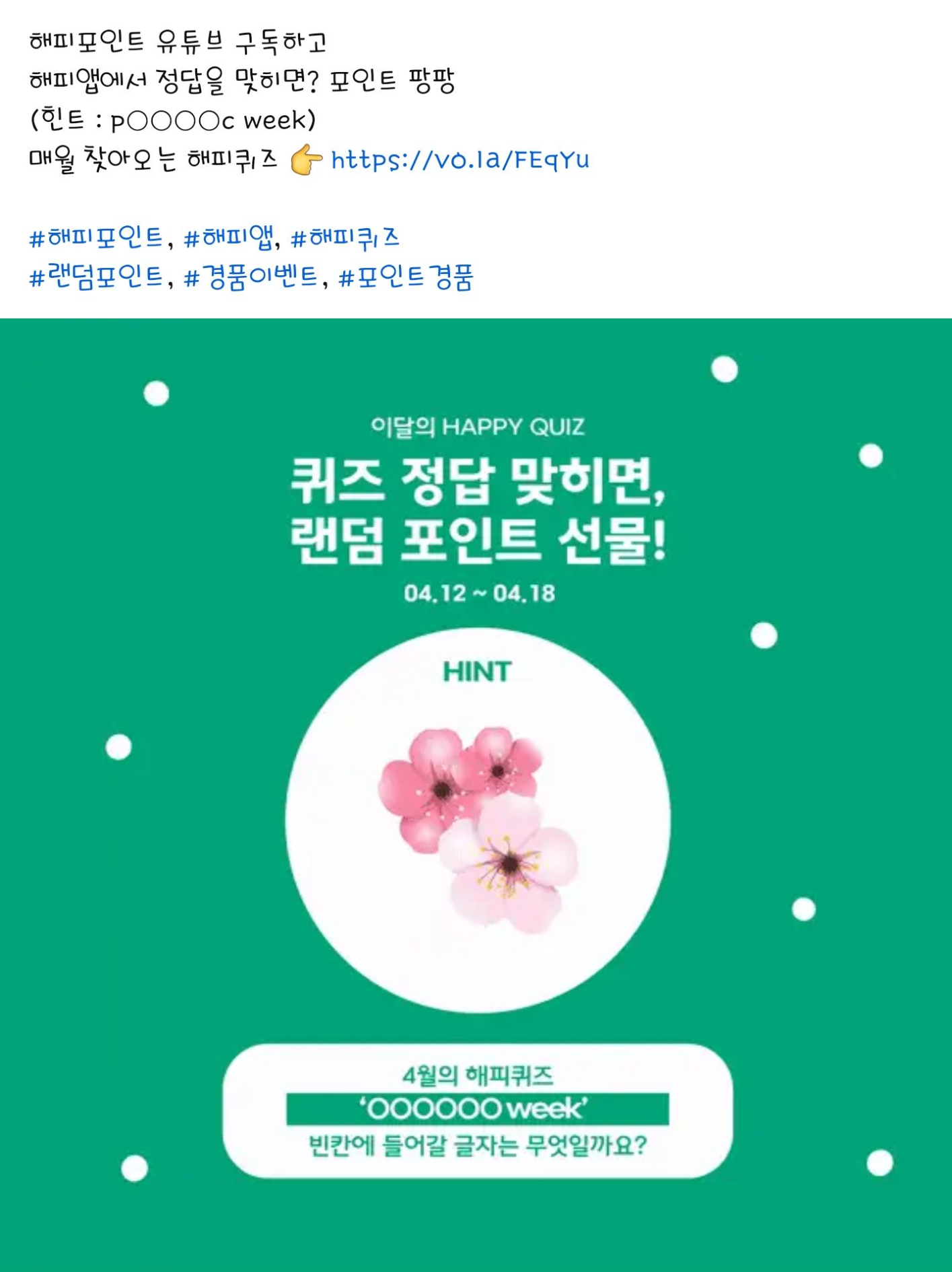 4월의 해피포인트의 해피퀴즈가 오픈했어요!