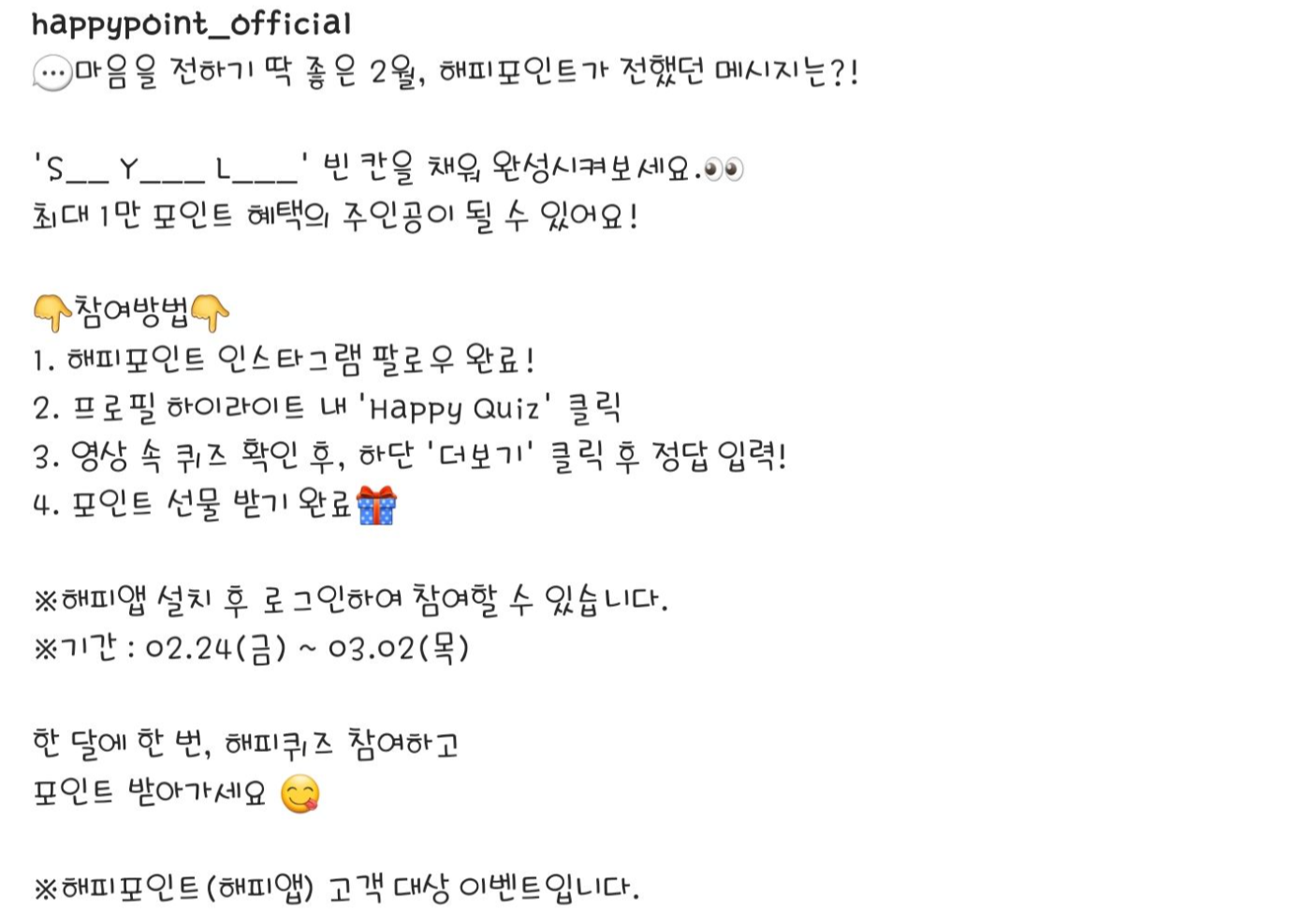 해피포인트 팔로워라면 도전해주세요!!