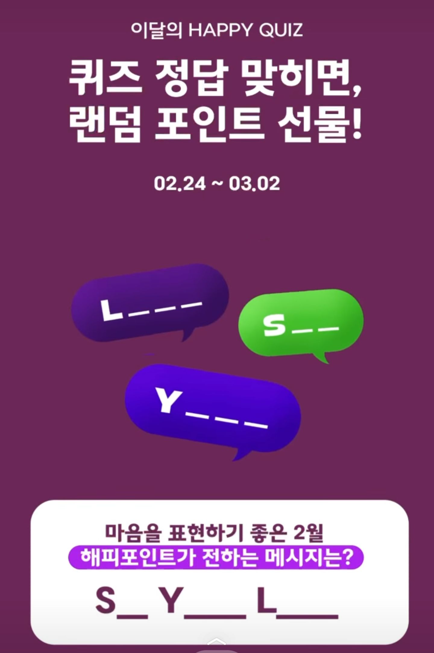 이 퀴즈는 해피포인트(해피앱) 고객 대상 이벤트입니다.