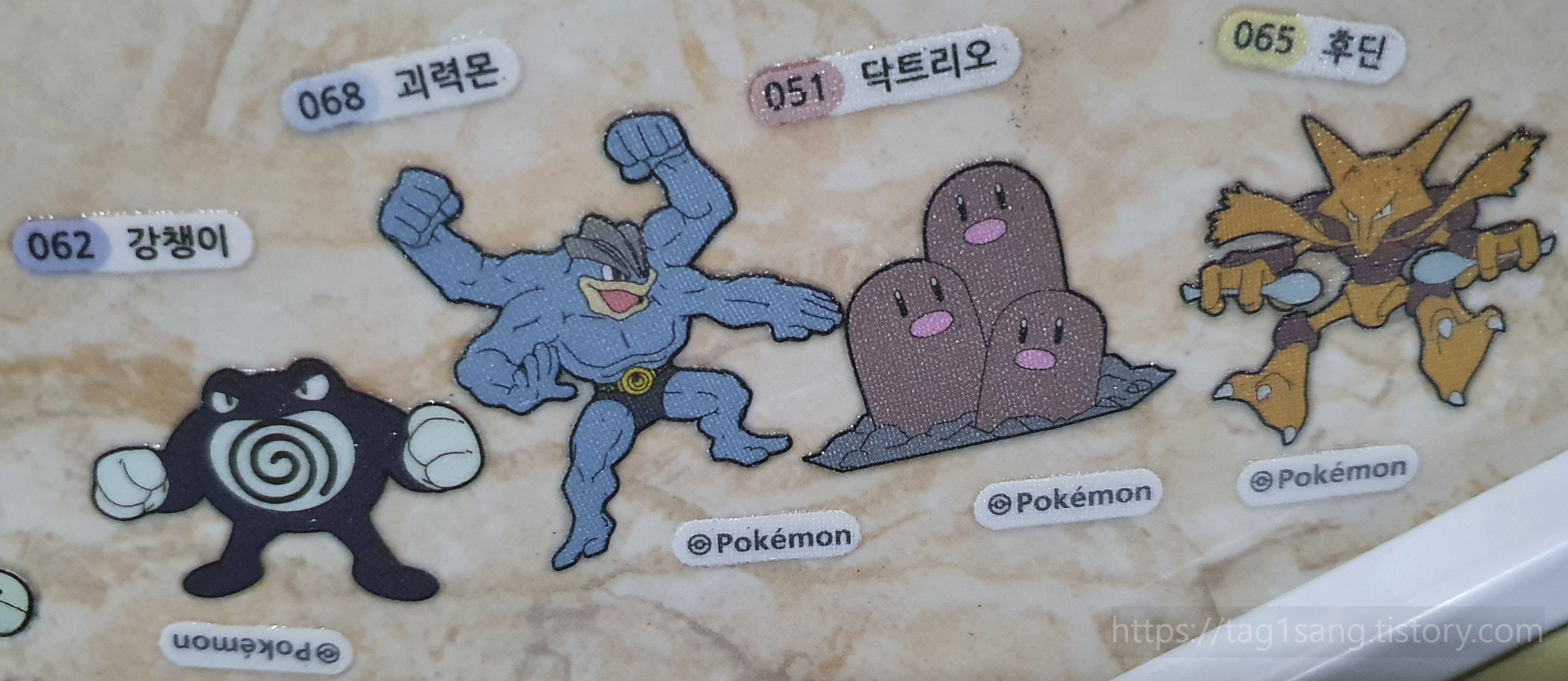 강챙이 3개, 괴력몬, 닥트리오, 후딘...