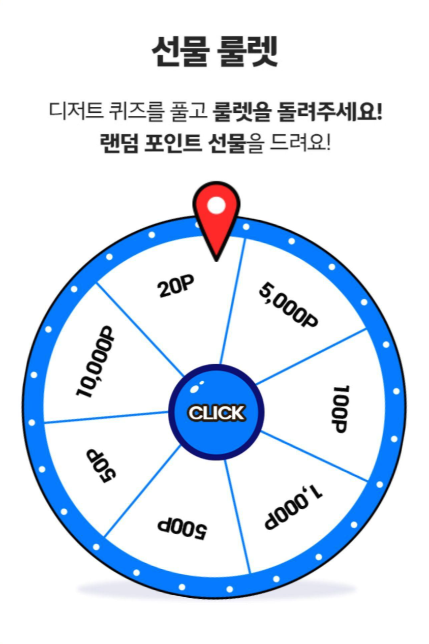 정답 입력을 한 뒤 룰렛을 돌리면 랜덤으로 포인트 선물을 받을 수 있는데 몇 포인트가 나오려나??