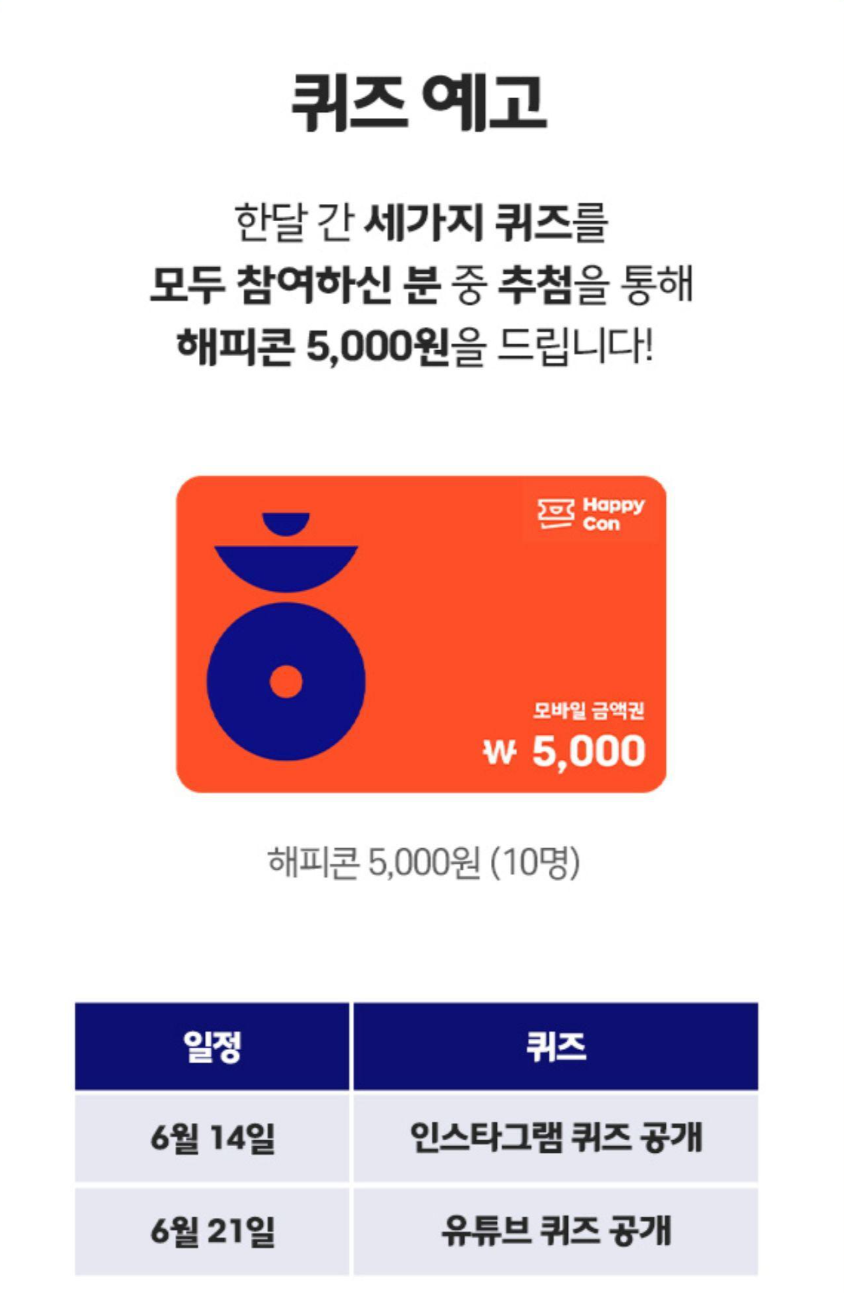 세가지 퀴즈를 다 참여하면 추첨을 통해서 해피콘을 준다고??