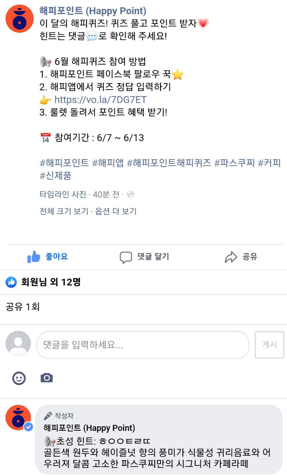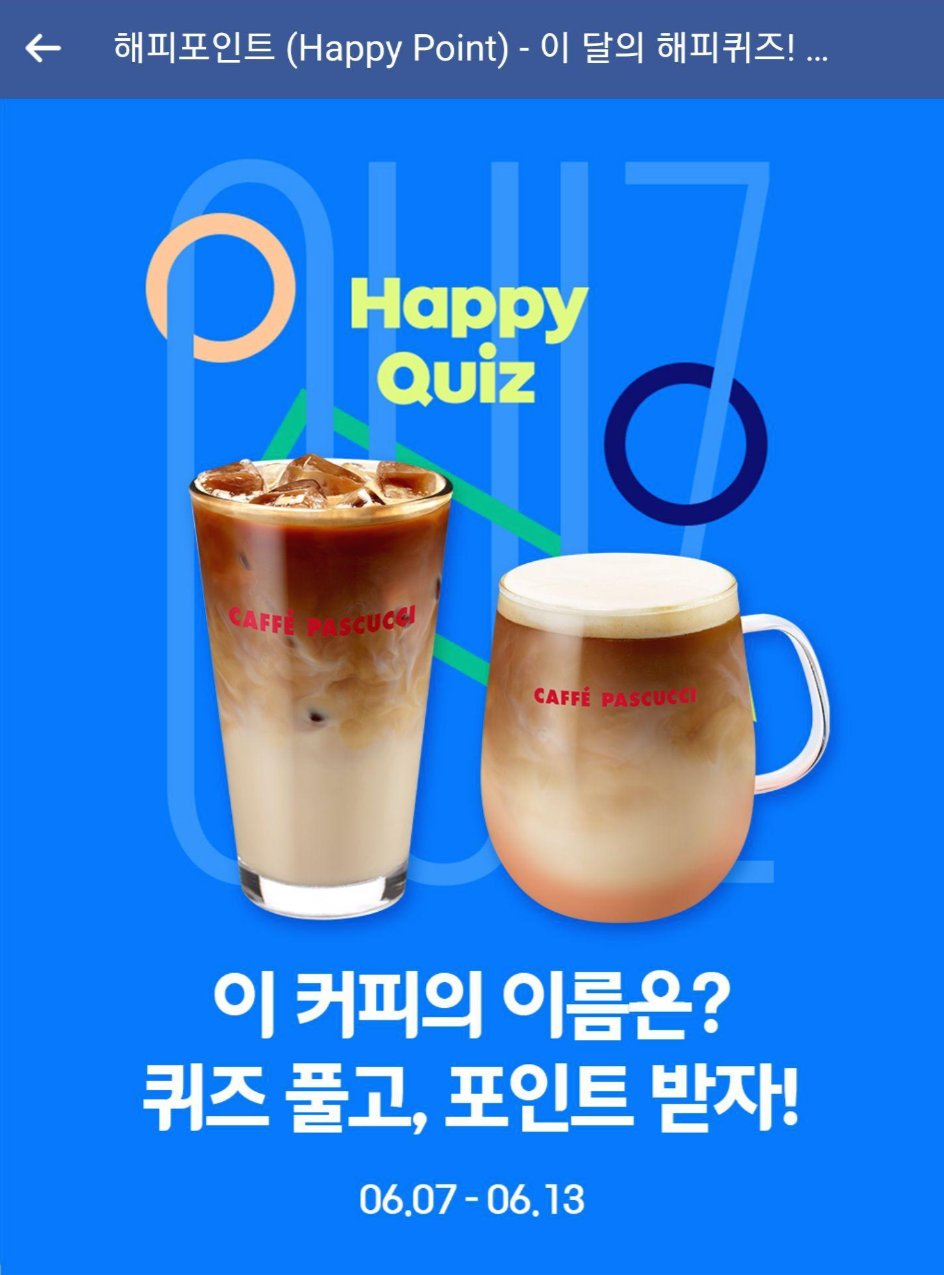 6월 7일 해피포인트의 해피퀴즈가 공개됐다~